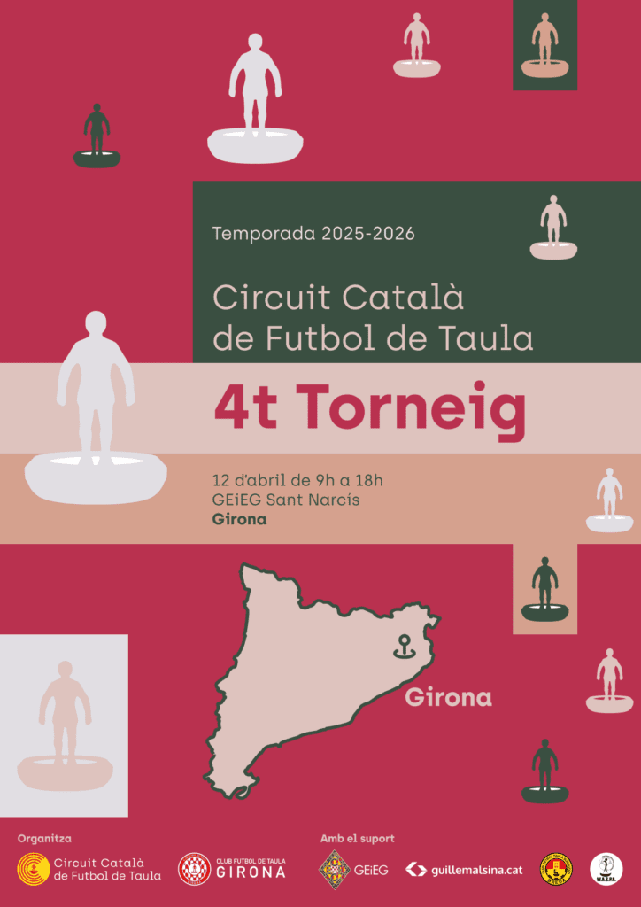 El Circuit Català de Futbol de Taula 2025–2026 continua avançant i ja té a punt la seva quarta cita de la temporada. Després dels primers tornejos del calendari, la competició es traslladarà fins a Girona, que acollirà el proper diumenge 12 d’abril una nova jornada del circuit.