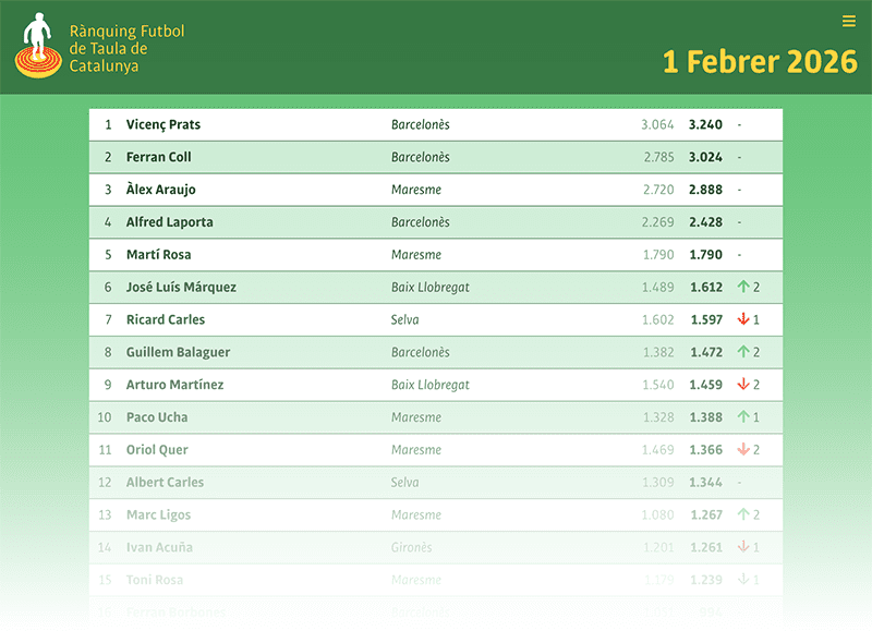 Classificació i Rànquing actualitzats i propera cita a Girona